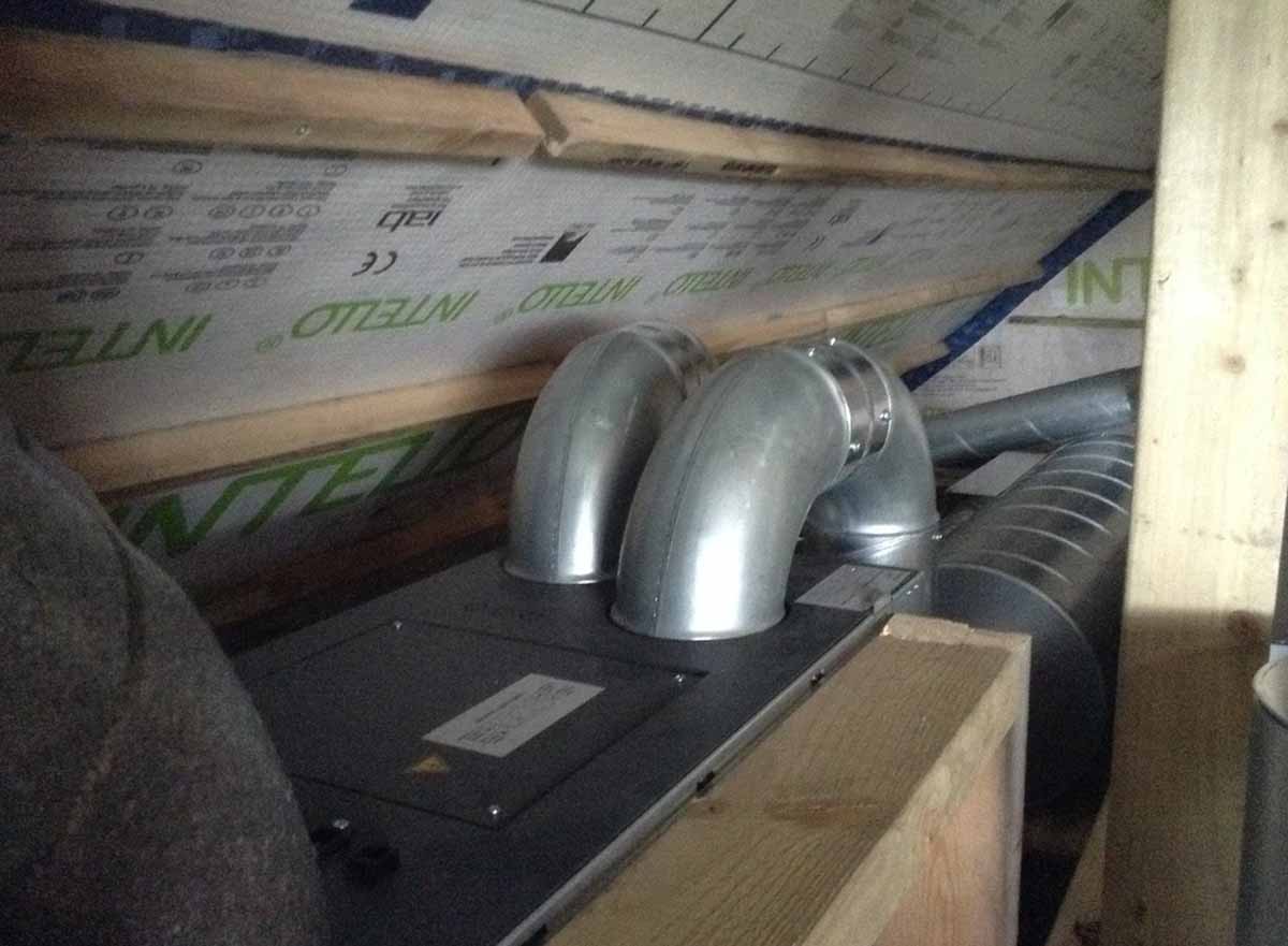 After: Paul Focus 200 heat recovery ventilation system. Passive House Institute certified to have heat recovery rate of 89%. Spiral bound galvanised steel ductwork by Lindab.