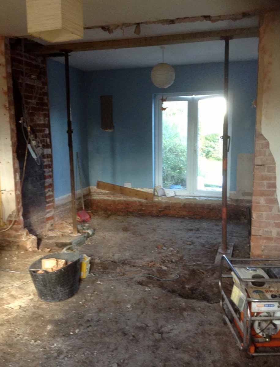 Before: Sub-base followed above by 100mm concrete ground bearing slab (uninsulated), quarry tiles.