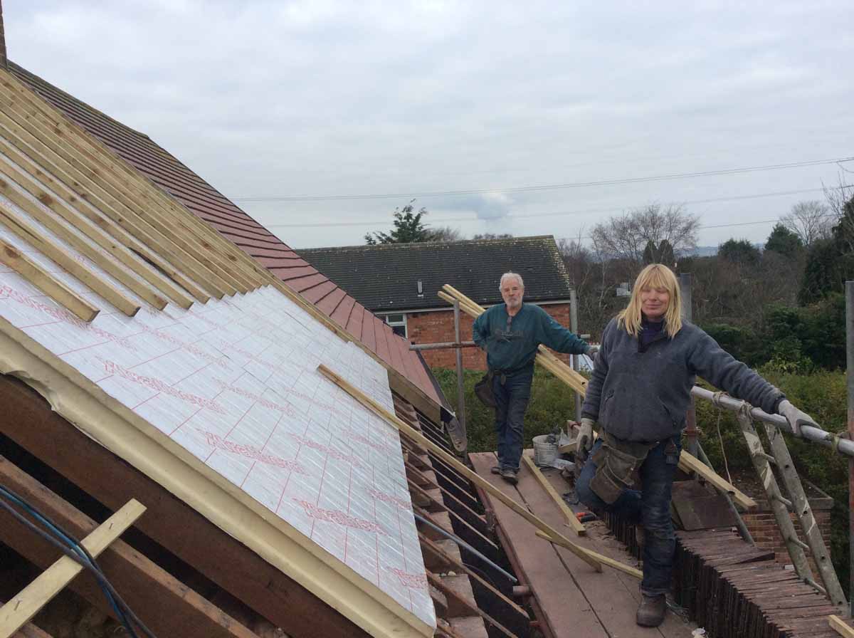 Before: Plain tiles on battens with mineral felt underneath. 300mm mineral wool insulation on the flat between roof joists and above. Plasterboard ceiling internally. U-value: 0.15 W/m2K